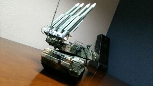 以前の状態からここまで製作しました。 大まかな配色を行い、これから細かい色分けをします。 塗装はいつもと同じ様にプライマーブラックを全塗装し、タミヤの自衛隊色の濃緑色をエアブラシで塗装しました。 その後、同じくタミヤカラーのフラットブラックと…